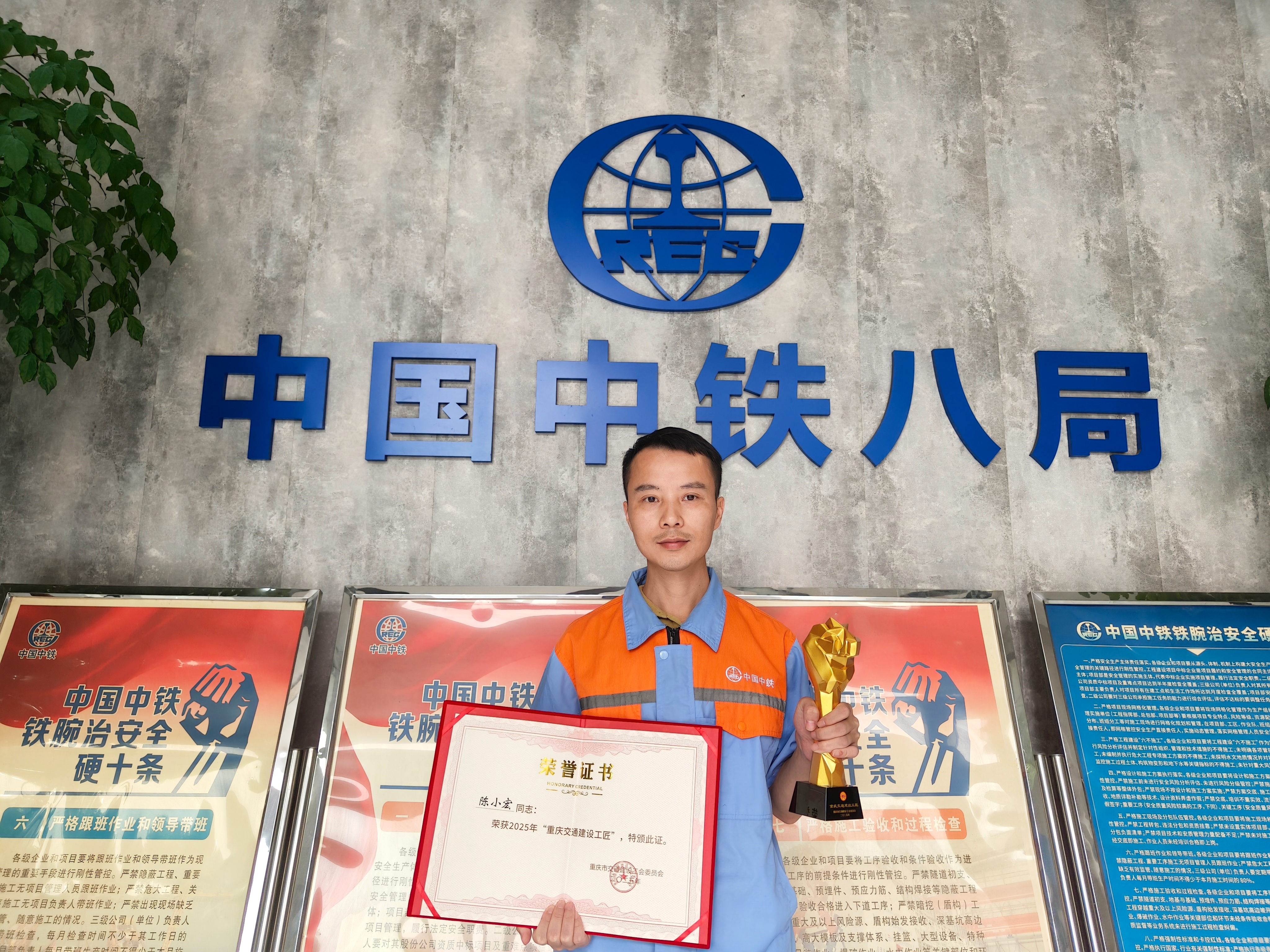 陈小宏自2010年参加工作以来,始终坚持扎根施工一线,从普通技术员逐步成长为项目总工程师。他始终秉持“勤干+实干”的工作理念,先后参与到重庆轨道交通4号线二期站后常规系统1标、沪蓉线隧道救援整治等重点工程的建设中。在重庆轨道交通4号线二期站后常规系统1标工程建设中他带领团队攻克多项技术难关,保障所有车站一次性通过消防验收,为该项目荣获“鲁班奖”奠定了基础。