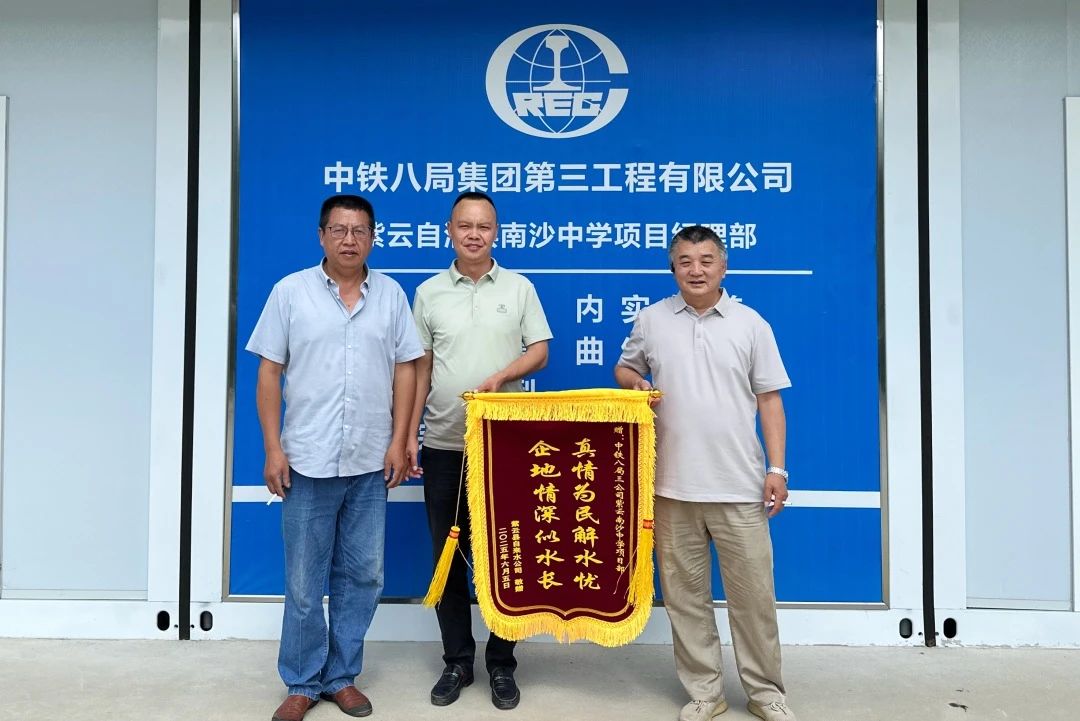 近日,紫云县自来水公司向集团公司紫云南沙中学项目部赠送了一面印有“真情为民解水忧 企地情深似水长”的锦旗,对项目部在关键时刻伸出援手,高效解决甘桥村村民停水难题表示诚挚感谢。