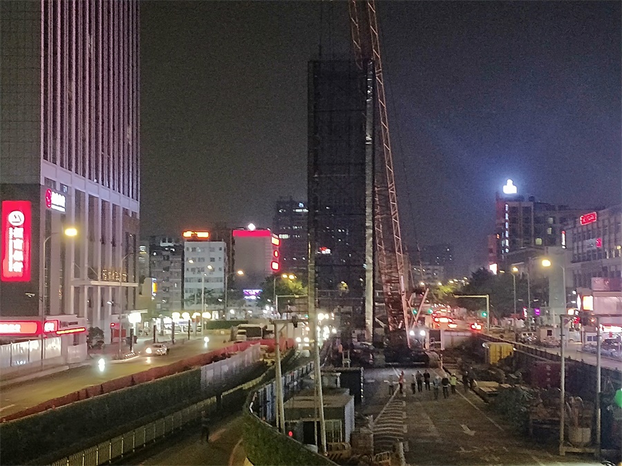 棠下站位于广州市天河区中山大道西与科新路的交叉路口,BRT棠下站与BRT棠东站之间,沿中山大道西东西向敷设,地面楼房林立,交通繁忙,地下管线众多,安全风险较高,迁改协调难度大。为保证棠下站顺利施工,城通公司广州地铁十三号线项目部自进场以来,始终坚持高标准、严要求,精心组织、科学筹划,以安全生产为前提,狠抓施工生产质量和工期进度。在建期间,攻克了征地拆迁、管线迁改、三期交通疏解、对外协调等重重难关,于2019年12月19日完成三期扩围施工,为地连墙顺利施工奠定了基础。