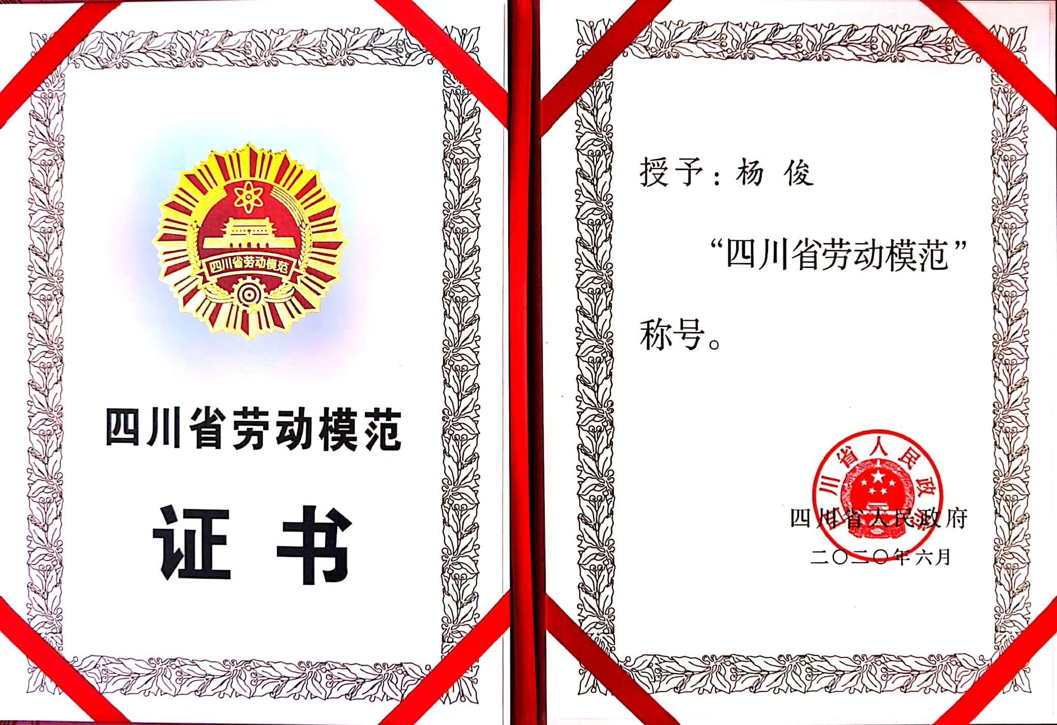12月2日,四川省第八届劳动模范和先进工作者表彰大会在成都锦江大礼堂隆重举行,大会宣读了《四川省人民政府关于表彰四川省第八届劳动模范和先进工作者的决定》,公司副总经理杨俊被授予四川省“劳动模范”称号。