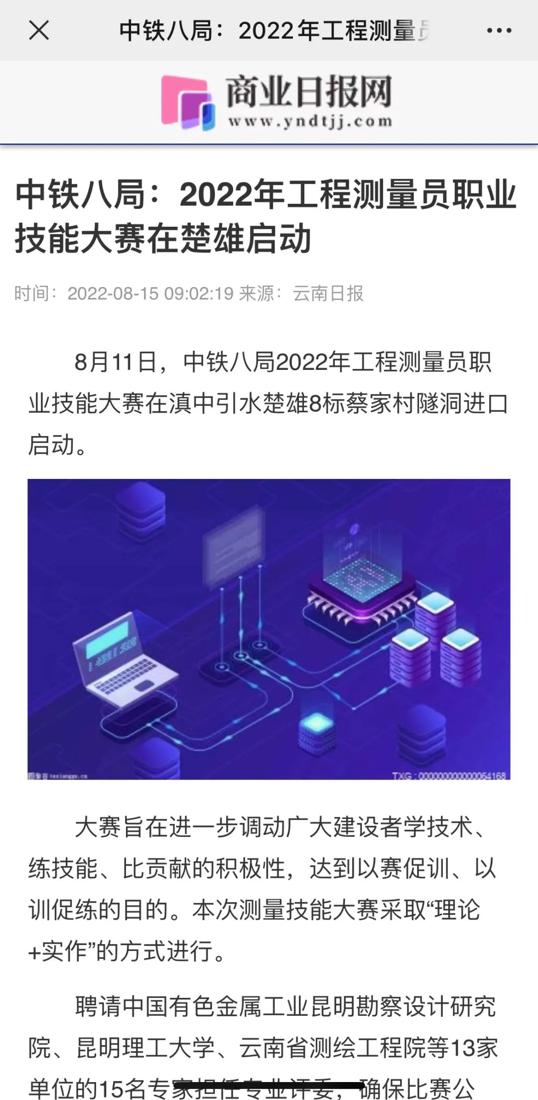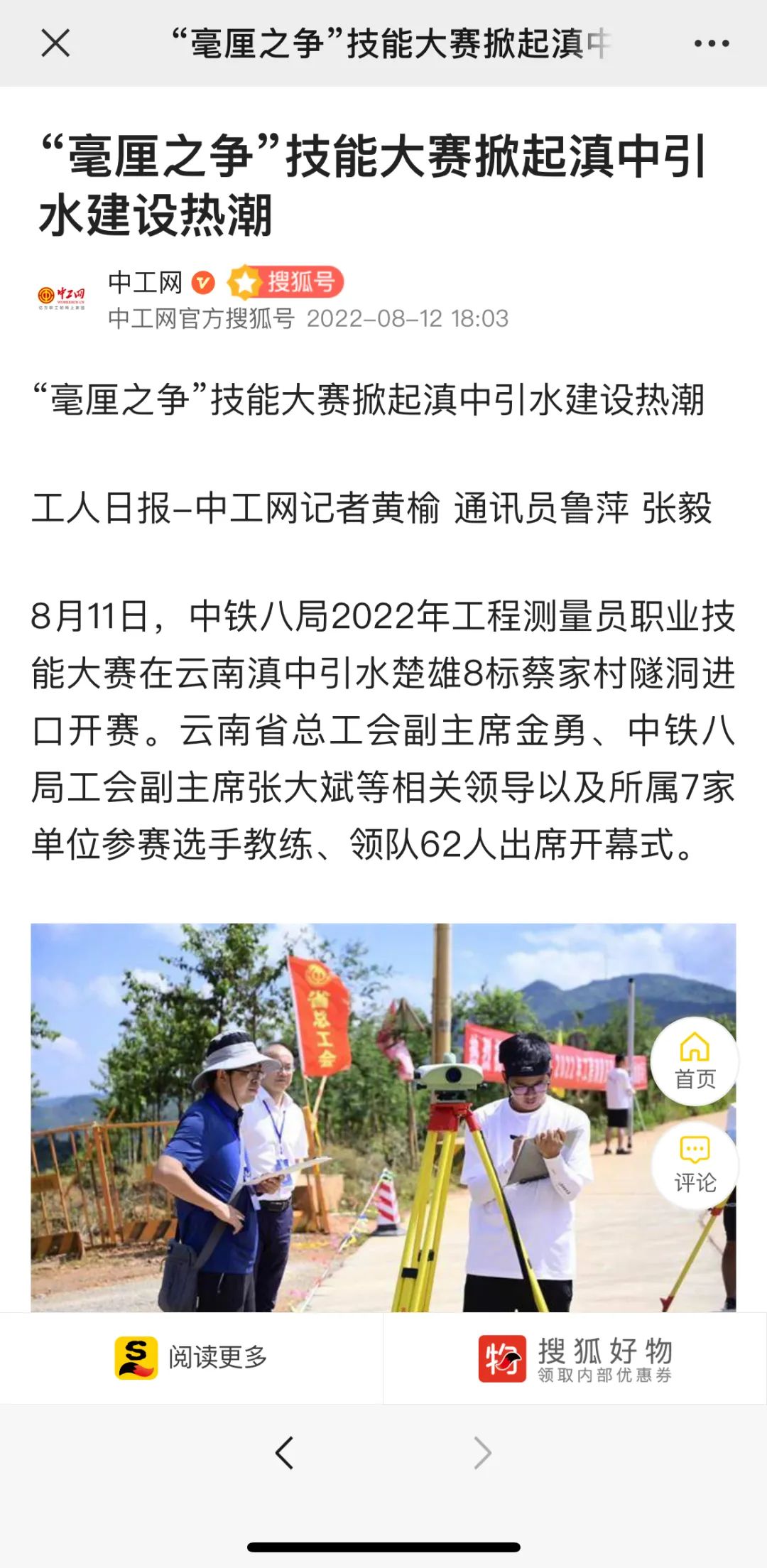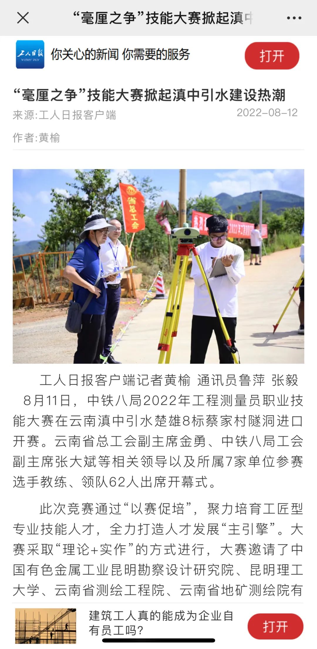 8月11日—14日,中铁八局在滇中引水楚雄8标项目举办2022年工程测量员职业技能大赛。