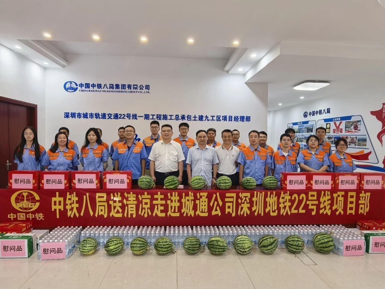 8月2日,集团公司副总经理高传伟到深圳地铁22号线项目部开展“送清凉”慰问活动,为奋战在高温下的全体干部职工送去防暑降温物资,传递组织关怀。