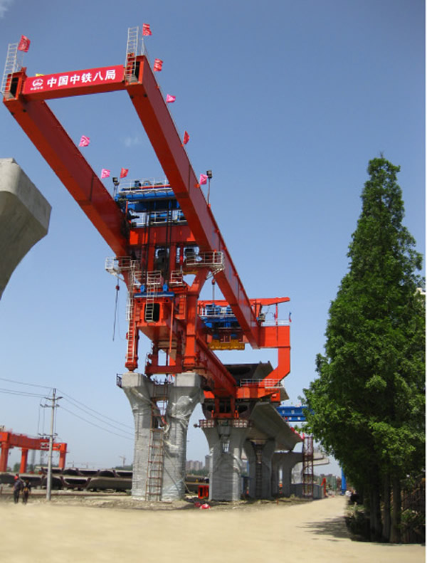 TLJ900型900吨架桥机正在架设成都至都江堰快铁郫县特大桥