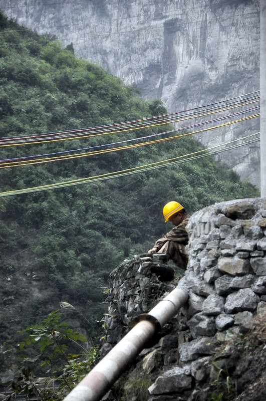 看样子,似在思考业务难题?似在思念远方亲人?不得知!有意与之攀谈,却终是不忍叨扰,暂且给这宁静的画面取名“思念”!我固执的肯定,面对这枯燥的工地生活,看着四周绵延的大山,唯有对亲人的思念,才是支撑信念的"梁"……