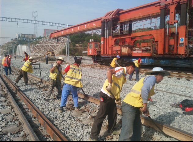 按照进度计划,广元西站要在5月15日前完成换轨、焊接和应力放散与锁定,20日前完成上碴整道,30日前完成线路捣固。公司调集500多名作业人员,分成两班,24小时连续作业,7月1日的大拨接,作业人员预计将增至1000余人。仅在广元西站,就部署了道岔大机3台,线路大机1台,火车机车6台,轨道车4台,铺轨机1台,公司统筹全司优势力量,全力确保6.30。