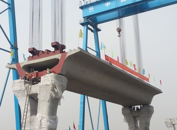 4月28日上午10点25分,随着喜悦的鞭炮声响起,在现场施工人员的密切配合下,公司承建的成蒲铁路的第一榀箱梁稳稳落于桥墩之上,成蒲铁路铺架施工正式启动。