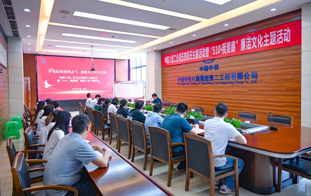 4月28日,中铁八局二公司党委、纪委、团委联合启动“学党纪扬清风正气,建新功当青年先锋”五四团日主题活动暨“510·我要廉”廉洁文化主题活动,全面掀起党纪学习教育热潮。活动通过“现场+视频”方式开展,公司所属31个项目、400余名青年视频连线参加会议。