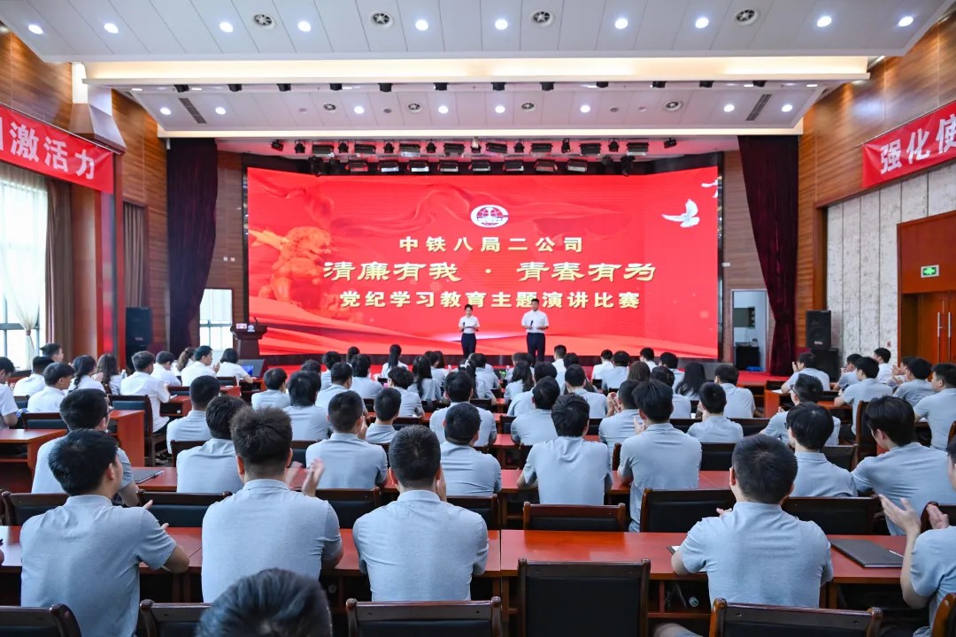 为庆祝中国共产党成立103周年,深入推进党纪学习教育,7月11日,中铁八局二公司成功举办“清廉有我·青春有为”党纪学习教育主题演讲比赛,集团公司团委副书记秦新,纪委综合室正科级纪检员唐茜,公司党委书记、执行董事胡建,党委副书记、纪委书记、工会主席朱洪斌及公司相关部门负责人出席活动并担任评委。