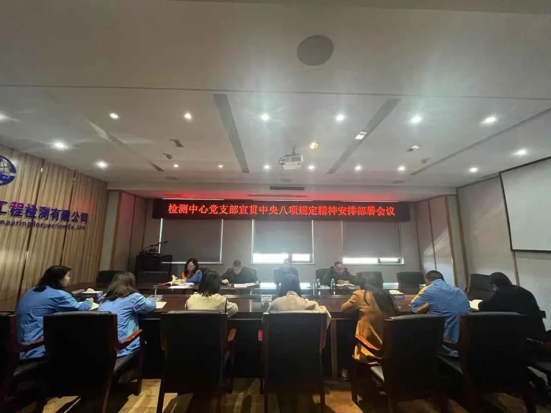 3月24日,检测公司党支部组织全体党员集中学习中央八项规定精神。会上传达了深入贯彻中央八项规定精神学习教育相关会议精神。会议强调,一是要坚决贯彻落实各级党委有关深入贯彻中央八项规定精神学习教育的要求,党员领导干部要带头学,组织广大党员深入学,切实提高思想政治觉悟。二是要坚持高标准、严要求抓好自身学习教育,持续深化党的创新理论武装,进一步强化党性修养。三是要压紧压实工作责任,勇担当敢作为,有序推进各项工作。