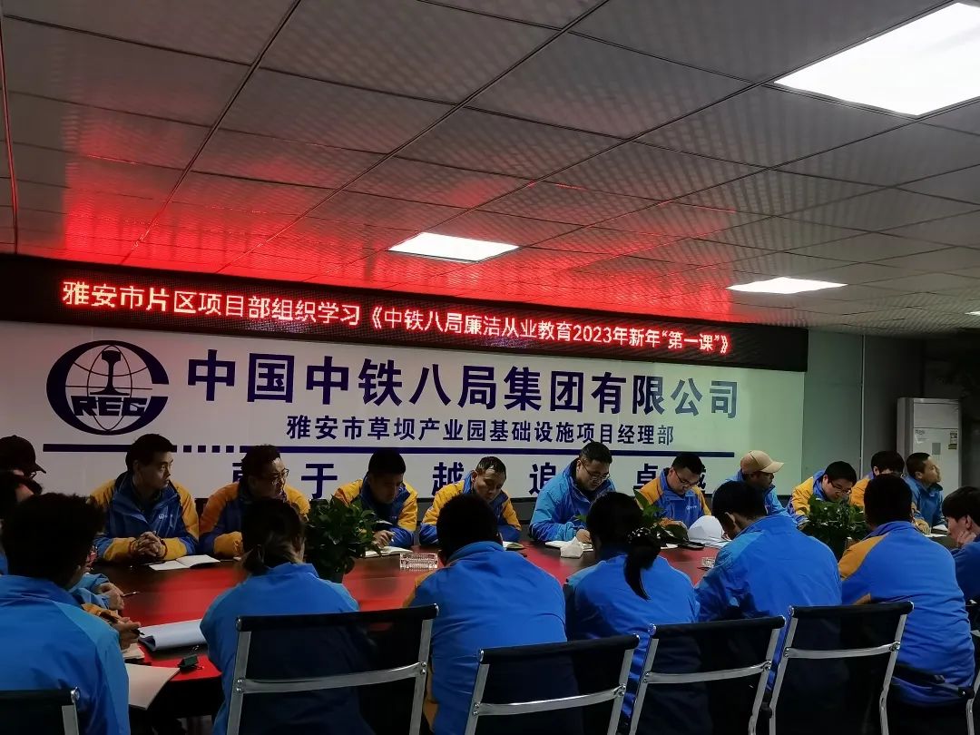 中铁八局雅安片区项目部极为重视公司下发《关于组织开展中铁八局廉洁从业教育2023年新年“第一课”的通知》,立即组织项目全体人员参加学习,通过学习教育,提高项目人员整体防腐意识,知敬畏、存戒惧、守底线。