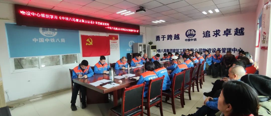 近日,物资设备管理中心组织全体员工开展廉洁从业教育新年“第一课”,学习宣贯了《中铁八局廉洁警示标语》,加深全体干部职工印象,深化对廉洁警示标语的认识,遵规守纪、履职尽责、忠诚干净担当。