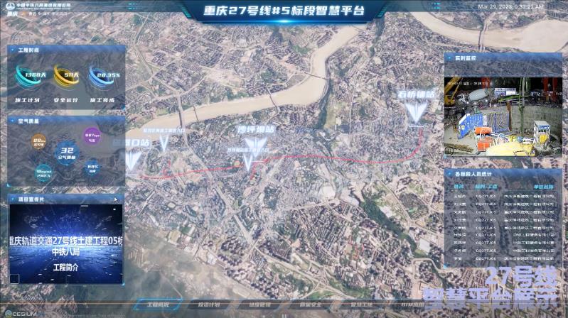 BIM(Building Information Modeling,建筑信息模型)是以建筑工程项目的各项相关信息数据作为模型的基础,进行建筑模型的建立,具有可视化、协调性、模拟性、优化性和可出图性五大特点,在提高生产效率、节约成本和缩短工期方面发挥重要作用。重庆轨道交通27号线服务城市中心区、西永及茶园组团中心,支撑沿线沙坪坝、大坪、南坪、茶园、大学城等商圈及人口聚集地区发展,串联沙坪坝站、重庆站、重庆东站等重要门户枢纽,实现城市内外交通快速转换,提升轨道交通效率。由集团公司承建的重庆轨道交通27号线土建工程05标段总长6666.6米,包含1站2区间。其中,磁沙区间为矿山法施工,沙坪坝站为双层初支拱盖法施工,沙石区间采用复合式TBM施工,项目施工均在都市核心区范围,安全风险高,施工难度极大。自开工以来,项目部积极推动BIM技术在实际施工中的应用,小到临建布设,大到方案变更,以BIM技术为施工现场解决难题,提高施工质量和经济效益,推动建筑行业的数字化智慧转型。